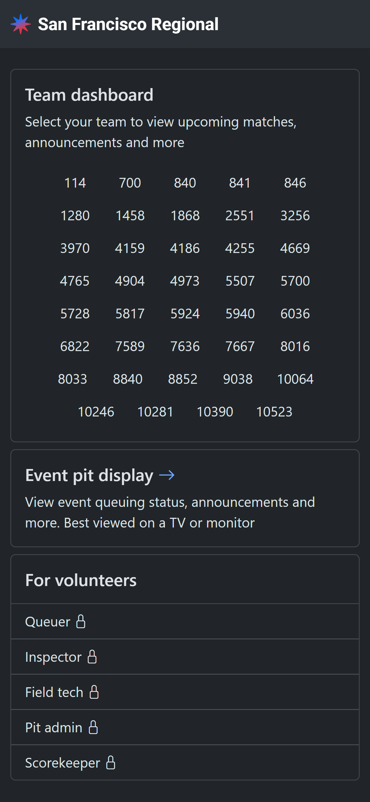 The easiest way to get access to an event in person is to scan a QR access code that is generated by someone at the event who already has access. Ask your lead (lead queuer or lead robot inspector) or the FTA for a QR access code.