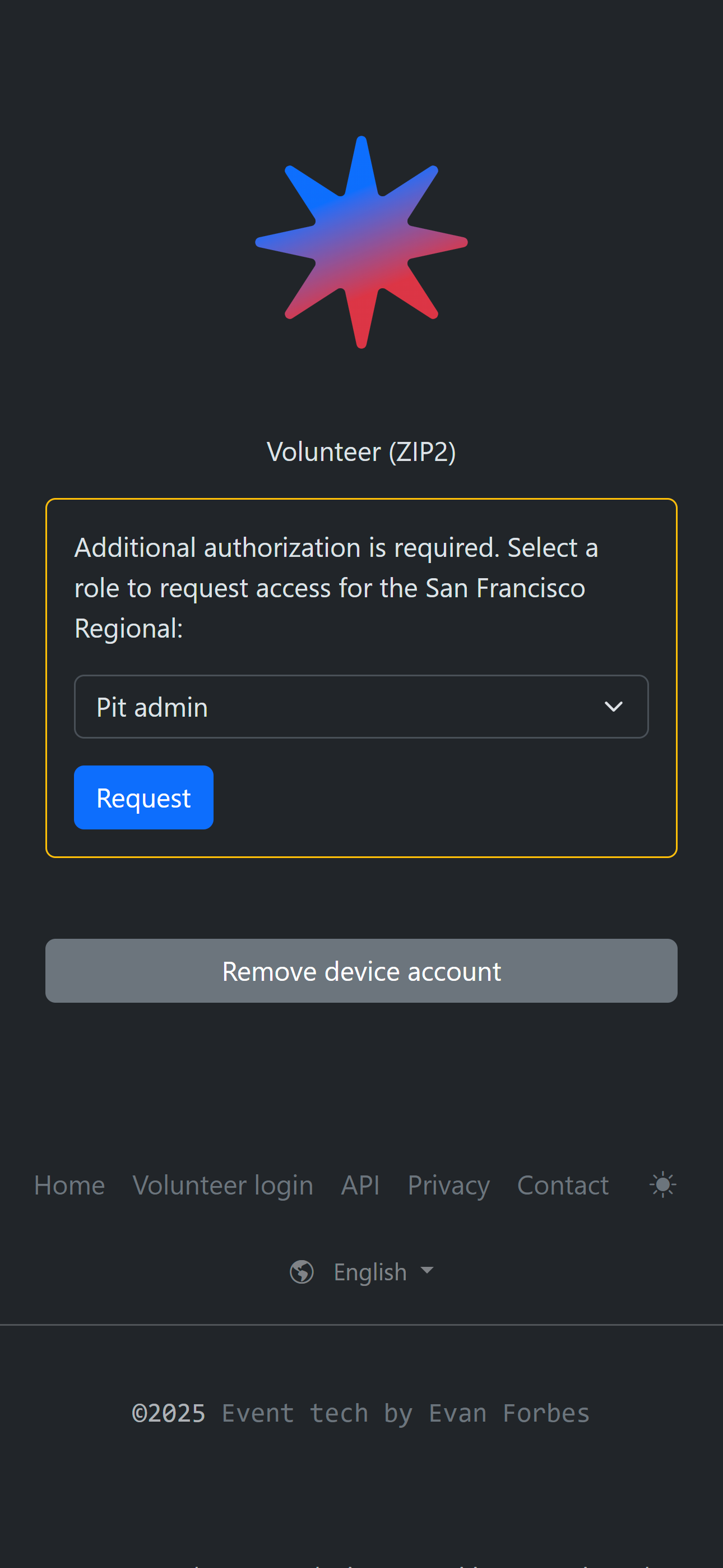 Note: device accounts can’t be used for certain features, like accessing the events dashboard (“Volunteer login” link) or creating a demo event