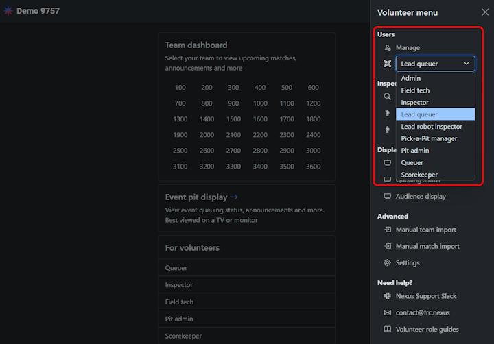 In the users section of the volunteer menu, select the role you want to grant to the volunteer. Allow the volunteer to scan the QR code.