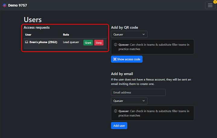 If a volunteer tries to access a page in Nexus that they do not yet have authorization for, they will be prompted to request access. You can view and accept pending access requests on the users page.