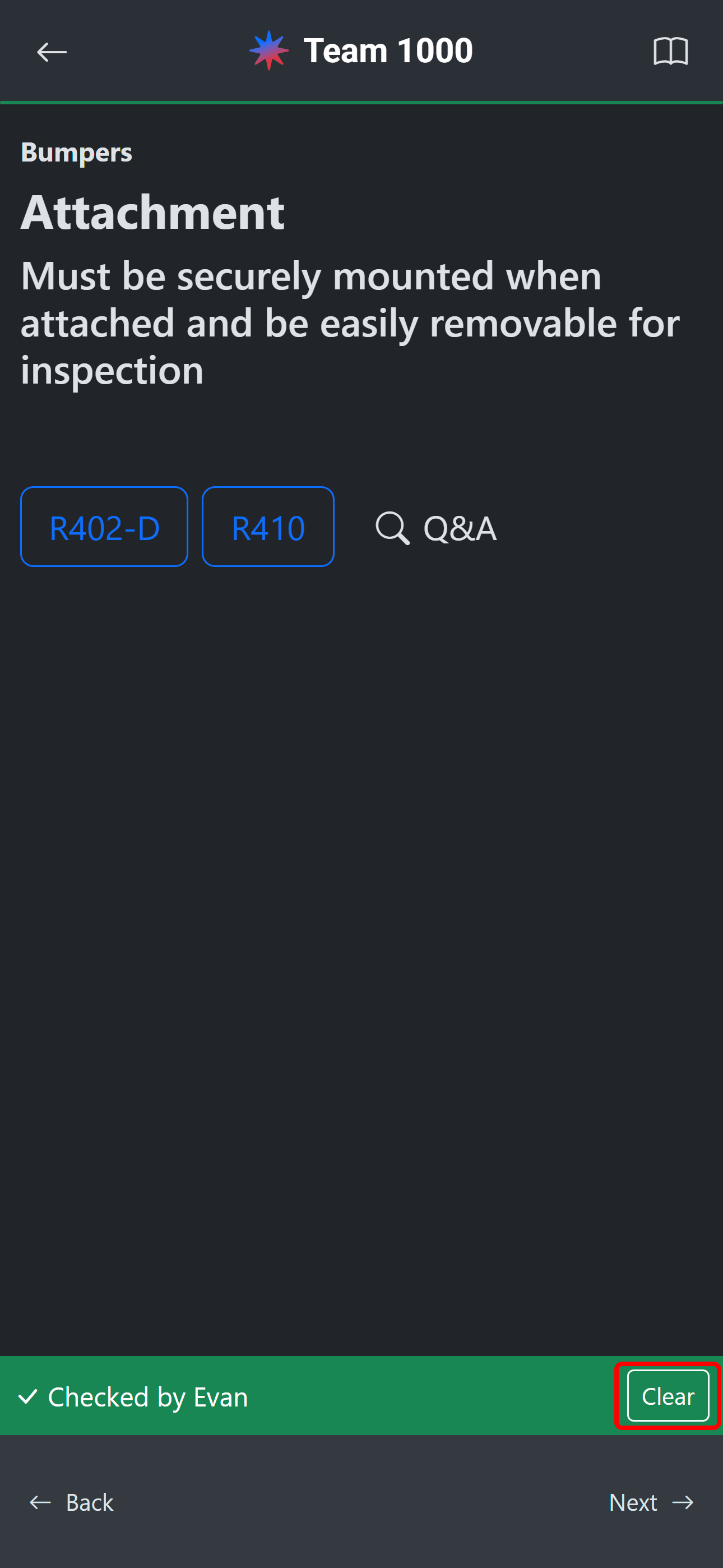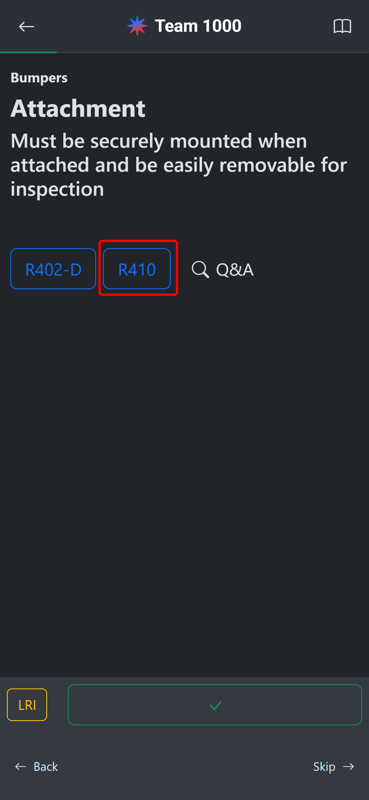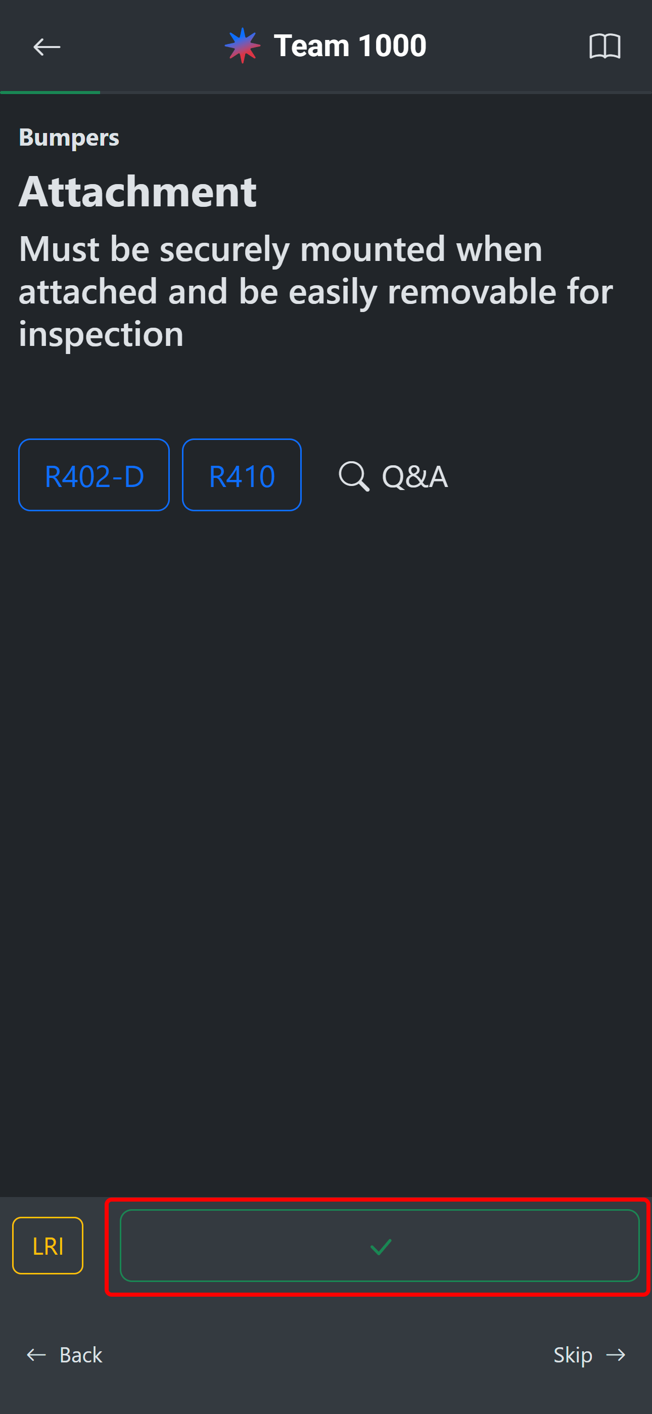 If you need additional context when reviewing an inspection item, tap a rule button below the item text. This will open an embedded version of the full game manual to that specific rule.