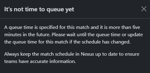 Queue matches in Nexus in order to send teams notifications when it’s time for them to queue.