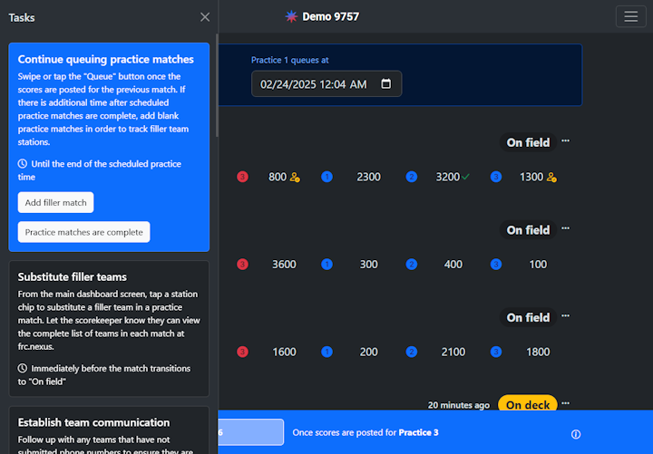 - Set queue time: After matches are imported, set the queue time ASAP so teams know when to come to the field for the first matches